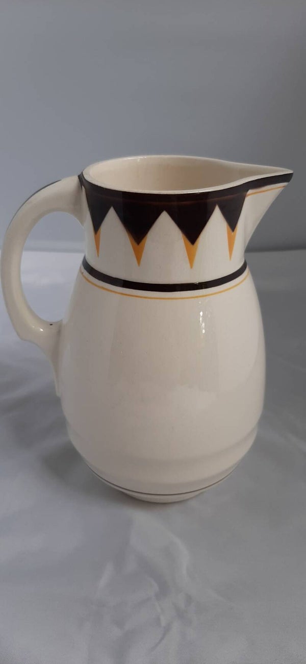 Gebroken wit met geometrische versiering in zwart en geel.