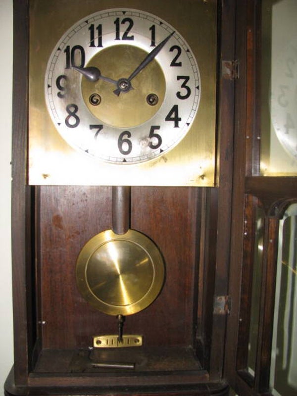 De wijzerplaat is beschadigd, de wijzers zijn eenvoudig van vorm.