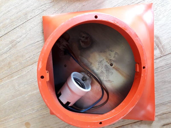 Wandlamp uit de jaren 70. Metalen buitenkant en bevestigings plaat. Wit glazen plaat op de voorkant waar het licht uit komt.