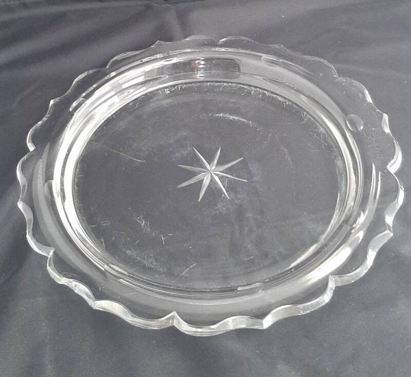 Onderbord heeft geschulpte rand. ( twee kleine chipjes aan de onderkant) In het midden een geslepen ster. (onderop slijtplekjes)