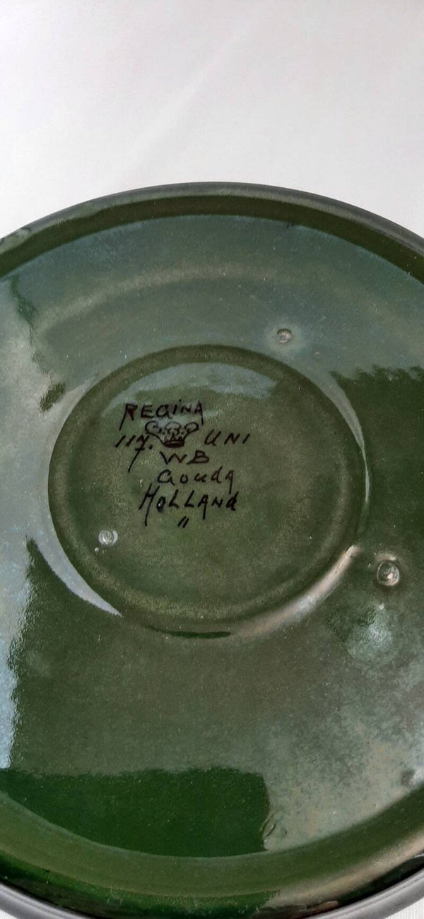 Basiskleur zwart met tulp motief. Gemerkt Regina 117 uni W B Gouda Holland.