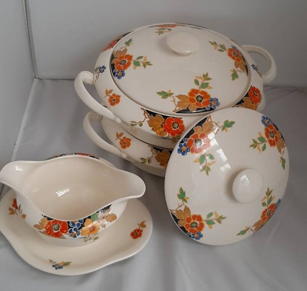 Dekschaal met deksel van Mosa Plateel. Diameter 24 cm. Hoogte met deksel ong 12 cm.